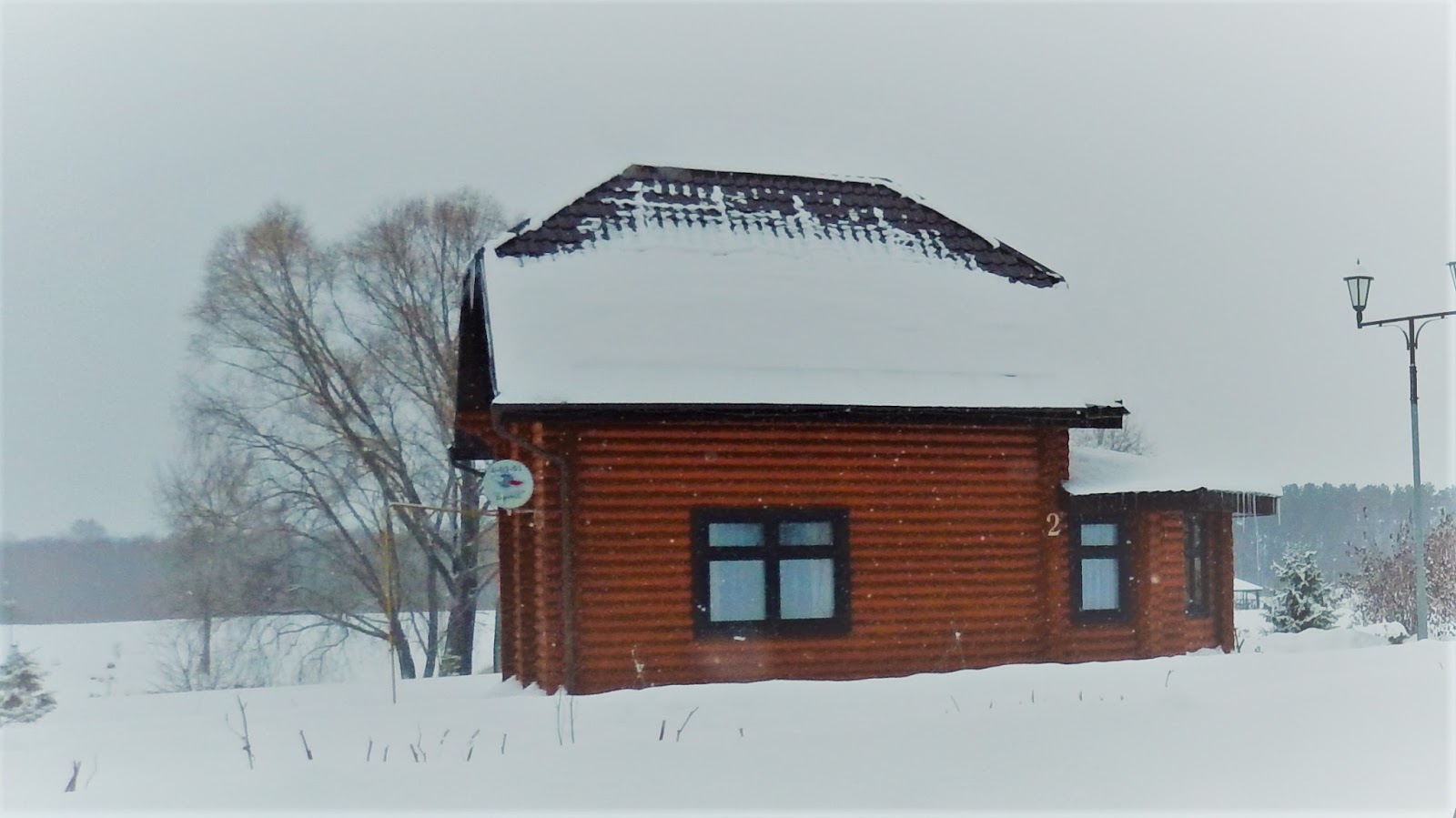 Зимняя дорога далеко не так живописна и увлекательна, но сочетание оттепелей и мороза выполнили свою декоративную функцию. Деревья, одетые в шубы выглядели торжественно и сказочно. Вполне в духе Нового года. Малыши спрашивали не там ли живут зайки, волки и медведи из сказок, но на дорожных знаках о медведях ничего не было. Зато было об оленях и лосях. Так что лесная часть пейзажа приносила приятные впечатления. А вот поля откровенно разочаровывали. Хотелось увидеть бескрайние белоснежные просторы из нетронутого пушистого одеяла, но кругом из под снега торчали черные скелетики не укрытой растительности, глядя на которую становилось почему-то тоскливо. Навигатор уверенно диктовал повороты. За одним из них наконец-то показались симпатичные дома. Вот и он — комплекс «Свияга».
